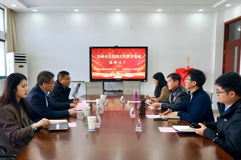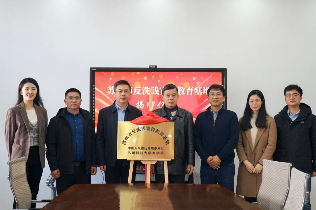 12月7日,MS88官方网站联合中国人民银行苏州市分行举办苏州市首个反洗钱宣传教育基地揭牌仪式。中国人民银行苏州市分行党委委员、副行长陈军,反洗钱部门负责人杭华良,商公司党委书记江忠华,副书记、副经理董现珠、副经理钱燕等参加揭牌活动。