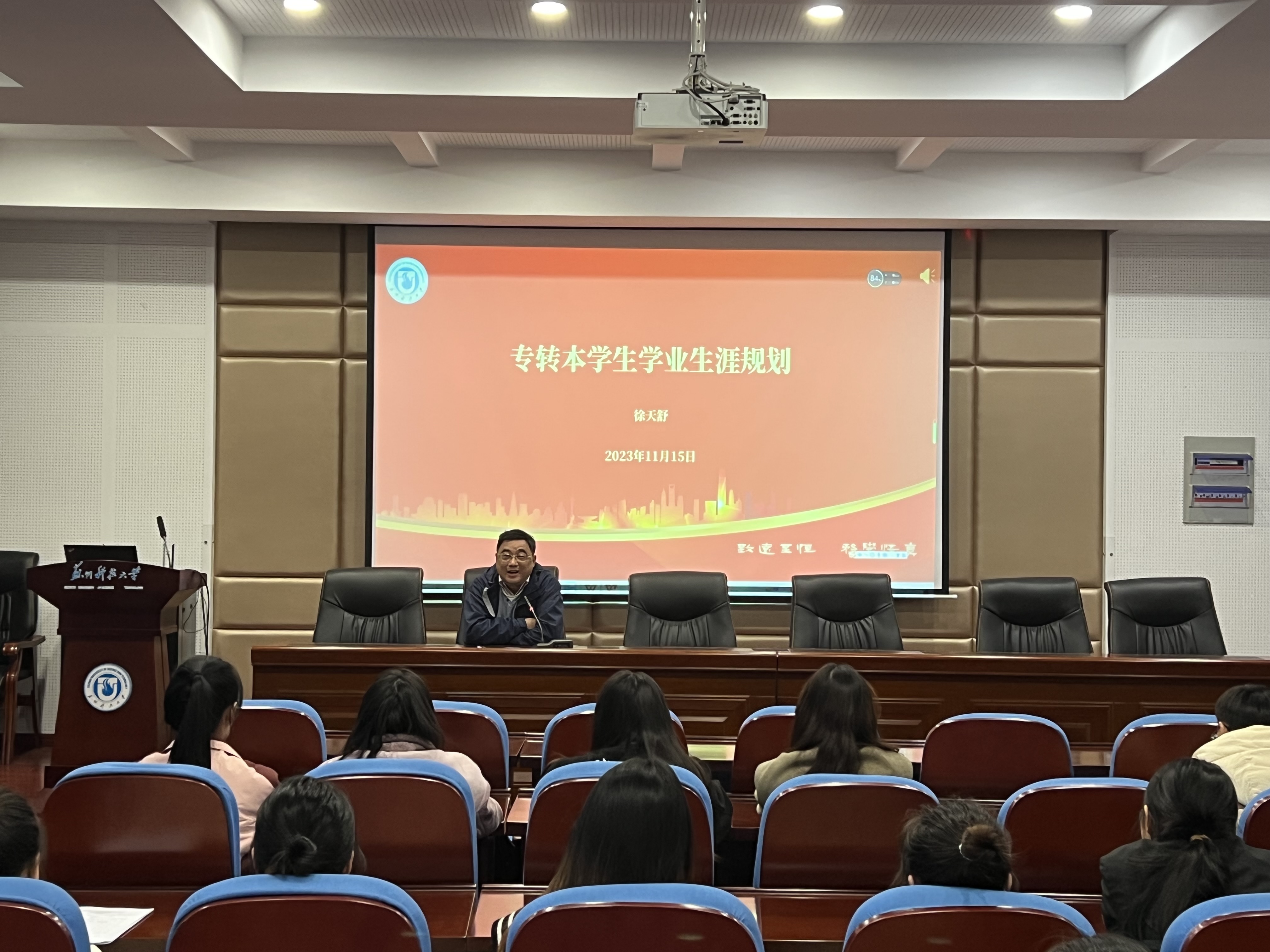 11月15日下午,MS88官方网站举办2021级专转本新生学业规划讲座,讲座由硕士生导师、校城市发展智库研究员、校学术委员会委员、工商管理专转本2111班班主任徐天舒教授主讲,2021级工商管理专转本全体员工参加。