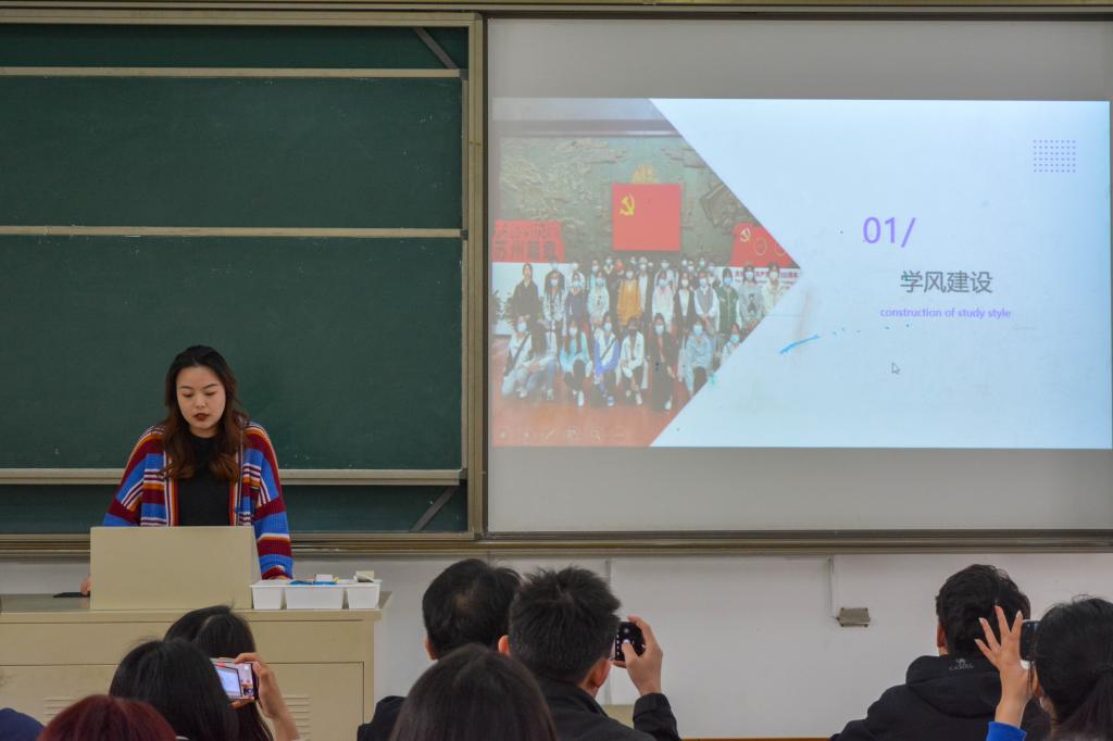财管2212和物流2112两个荣获“校先进班集体”称号的班级代表上台汇报,分享了他们在班级建设、学风培育及实践活动中的宝贵经验,为与会的员工干部提供了宝贵启示。