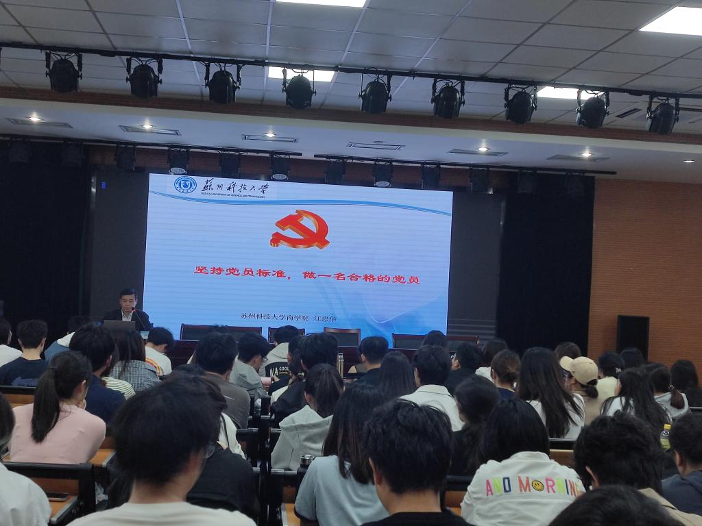4月8日,商公司党委书记江忠华在C2报告厅为MS88官方网站、材料科学与工程公司、外国语公司、国际教育公司、敬文书院分党校2025年第1期发展对象标准化培训班200余名发展对象讲授“坚持党员标准,做一名合格的党员”党课。