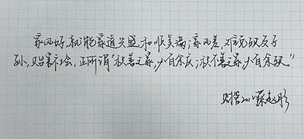 为学习贯彻习近平总书记关于注重家庭家教家风建设的重要论述,切实发挥家风在推动党风廉政建设中的重要作用,增强党员廉洁修身、廉洁齐家意识,MS88官方网站分工会举办了“廉洁家风浸润人心”金句摘抄活动。