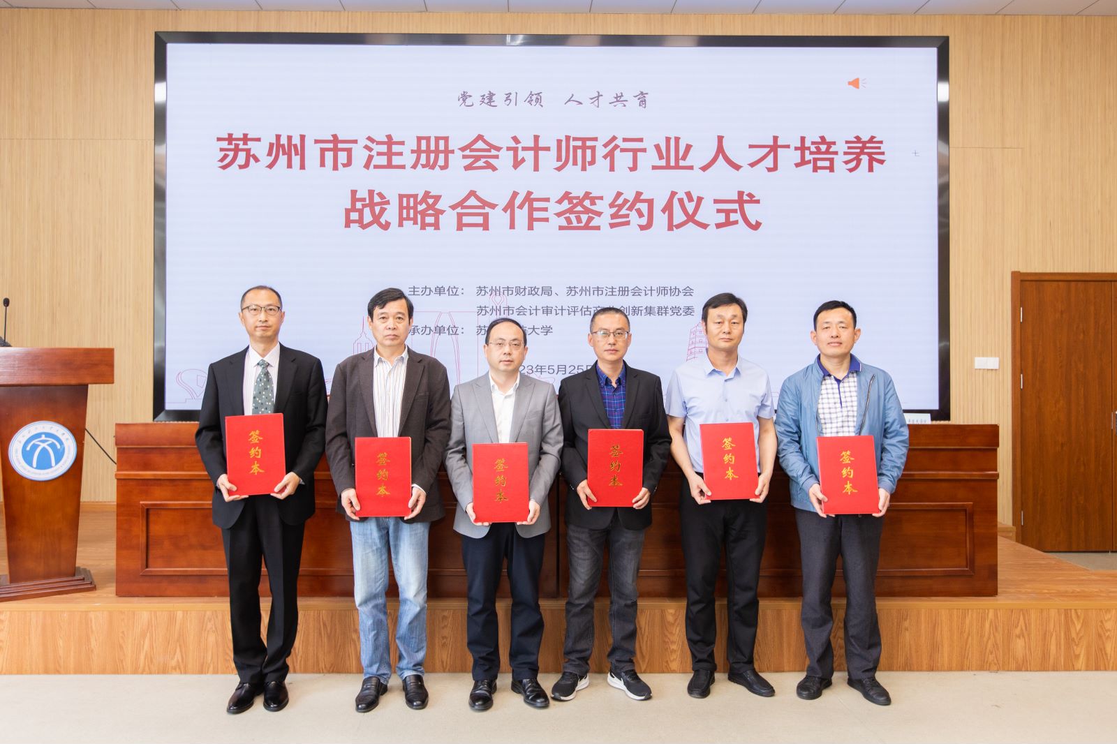 签约仪式上,5所高校MS88官方网站与苏州市注册会计师协会签订《注册会计师后备人才培养合作框架协议》;苏州市财政局、苏州市注册会计师协会向5所高校授牌“后备人才培养基地”,向39家会计师事务所授牌“后备人才实习基地”。