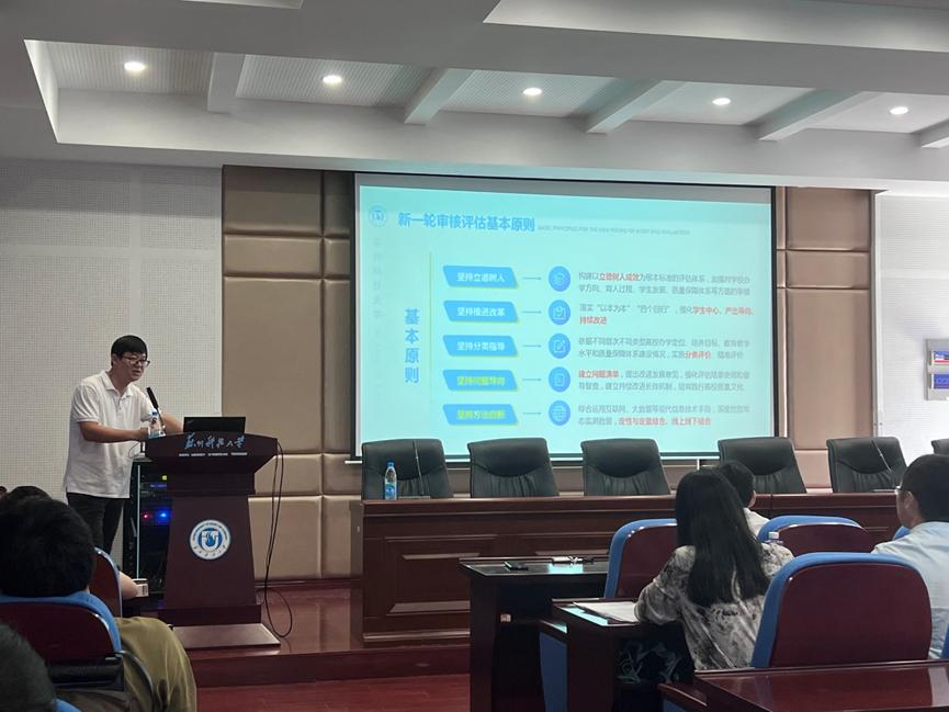 集团教务处处副处长孙云飞以《全面把握审核评估要求、扎实做好公司评建工作》为主题,详细介绍了新一轮本科公司产品审核评估的意义与指导思想,解读了评估的指标体系、评估标准、考察重点及工作流程等方面,分析了评估中可能存在的问题。MS88官方网站副经理钱燕随后宣布了公司本科公司产品审核评估工作小组构成,并部署了细化实施计划,明确任务和要求。最后,商公司党委书记江忠华总结讲话,强调本科公司产品审核审核评估时间紧、任务重、难度大,全院教职工要充分认识该项工作的重要性,凝心聚力,沟通协调形成合力,以高度的责任感和使命感,全力以赴地投入到评估工作中,向公司交上一份满意的答卷。