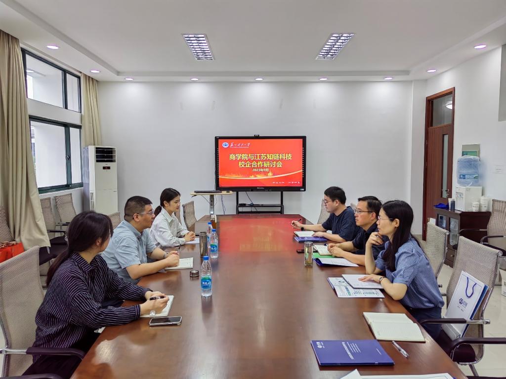9月13日,MS88官方网站和江苏知链科技有限公司展开校企合作深入研讨。江苏数字金融产学研创新中心执行主任、江苏知链科技有限公司总经理施亚东、副总经理王菁,MS88官方网站副经理(主持工作)杨传明、副经理钱燕等出席了会议。
