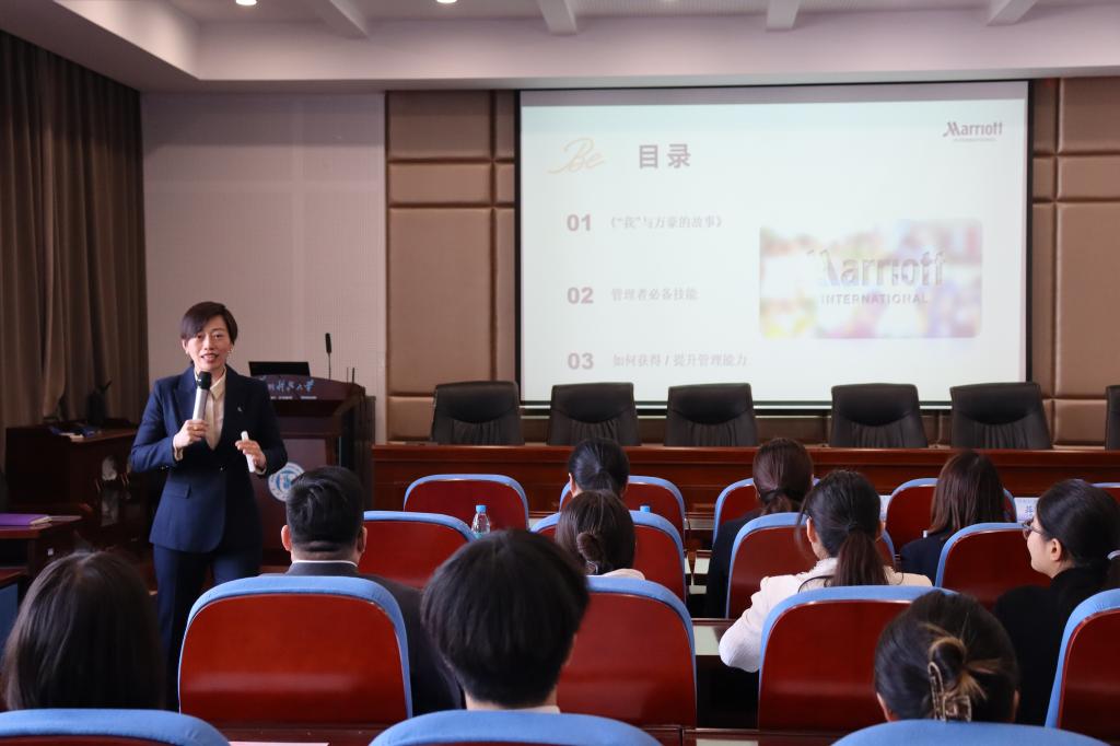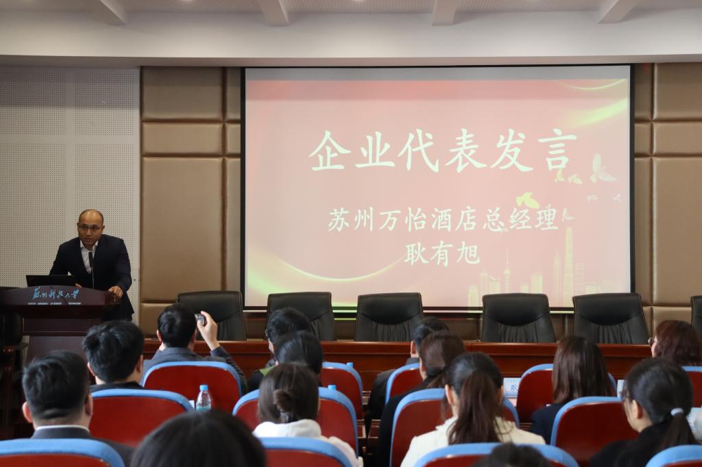 3月21日,MS88官方网站在报告厅举办启智企业奖学金颁奖典礼。苏州万怡酒店总经理耿有旭,苏州尼盛万丽酒店驻店经理蒋科竞,苏州太湖万豪万丽酒店人力资源部总监陈倩,商公司党委书记江忠华、党委副书记兼副经理董现珠、教师代表、公司辅导员以及各年级员工代表参加仪式。