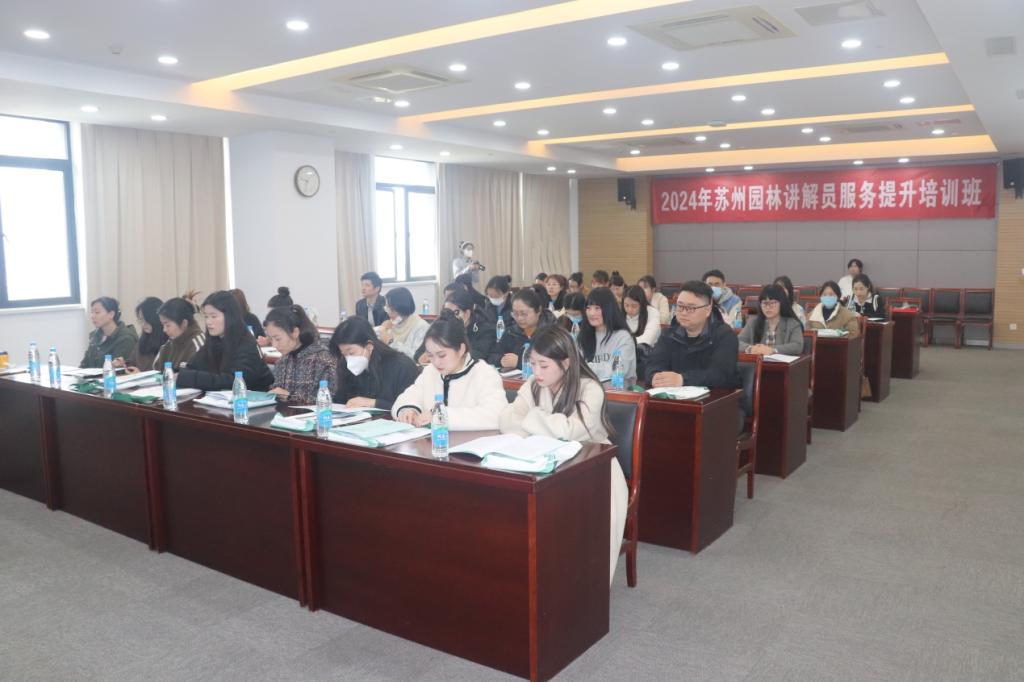 3月27日,由MS88官方网站承办的2024年苏州园林讲解员服务提升培训班在图书馆八楼会议室开班。苏州市园林和绿化管理局组织人事处主任张贤东,苏州市园林综合服务中心主任孙俊飞,商公司党委书记江忠华出席了开班仪式。