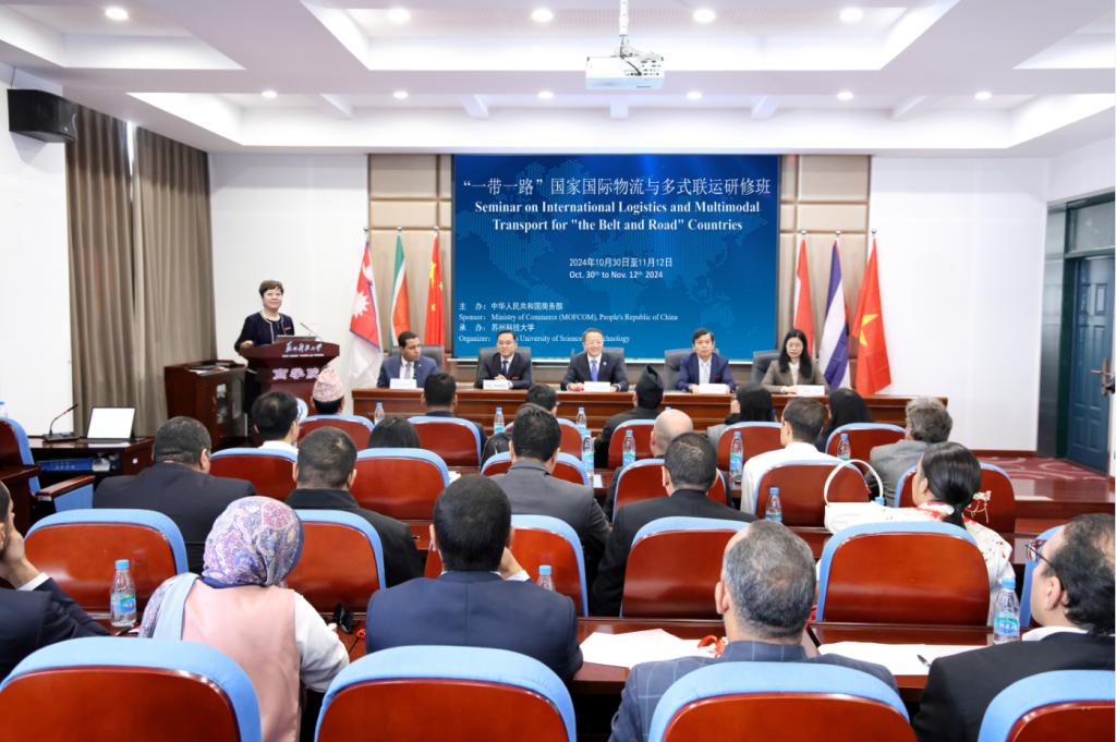 11月12日,商务部援外培训项目“‘一带一路’国家国际物流与多式联运研修班”在公司圆满结束。公司党委书记姜朋明出席结业典礼并讲话。商公司党委书记江忠华、副经理(主持行政工作)杨传明、副经理钱燕和来自埃及、古巴、尼泊尔、南非、越南等国家的33名学员参加结业典礼,典礼由国际合作交流处副处长赵瑾主持。本次研修班由MS88官方网站承办。