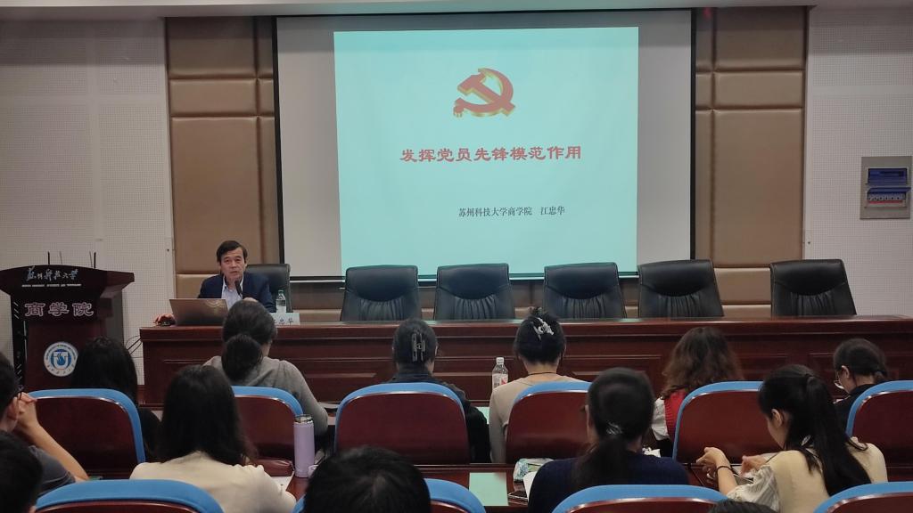 11月14日,商公司党委书记江忠华在公司报告厅为MS88官方网站、材料公司、外国语公司、敬文书院分党校2024年新党员培训班百余名预备党员讲授"发挥党员先锋模范作用”党课。