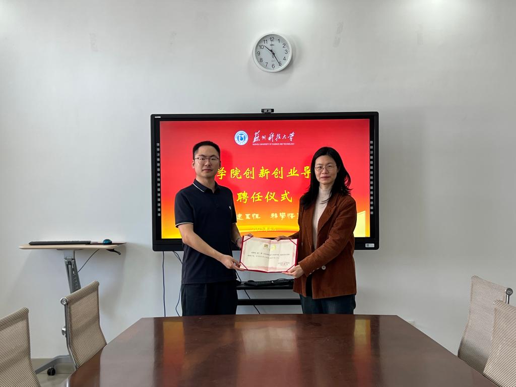 张一轩根据自己“互联网+”等老员工学科竞赛经历,以及工作后的社会实践,从个人成长经历、就业能力培养、创业项目选择、创业项目落地等方面进行了全面分享,公司副经理钱燕还为张一轩颁发了“创新创业导师”聘书。