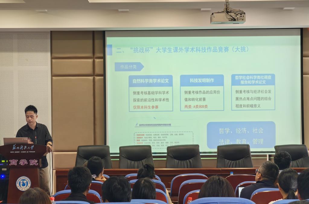 9月6日,为深化创新创业教育,培育高质量竞赛项目,MS88官方网站在报告厅举办“挑战杯”系列竞赛宣讲会。会议邀请了校团委书记黄凯进行主讲,公司全体教师参加会议。