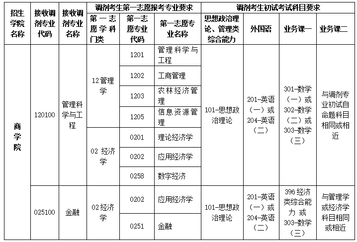 备注:1. 申请调剂考生须同时满足第一志愿专业范围及初试考试科目要求;
