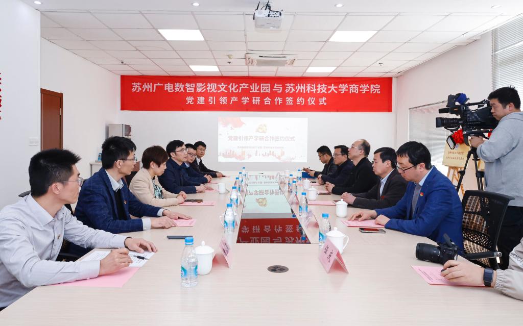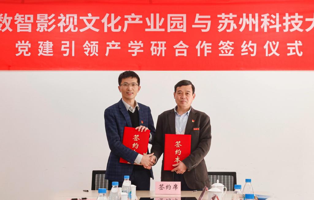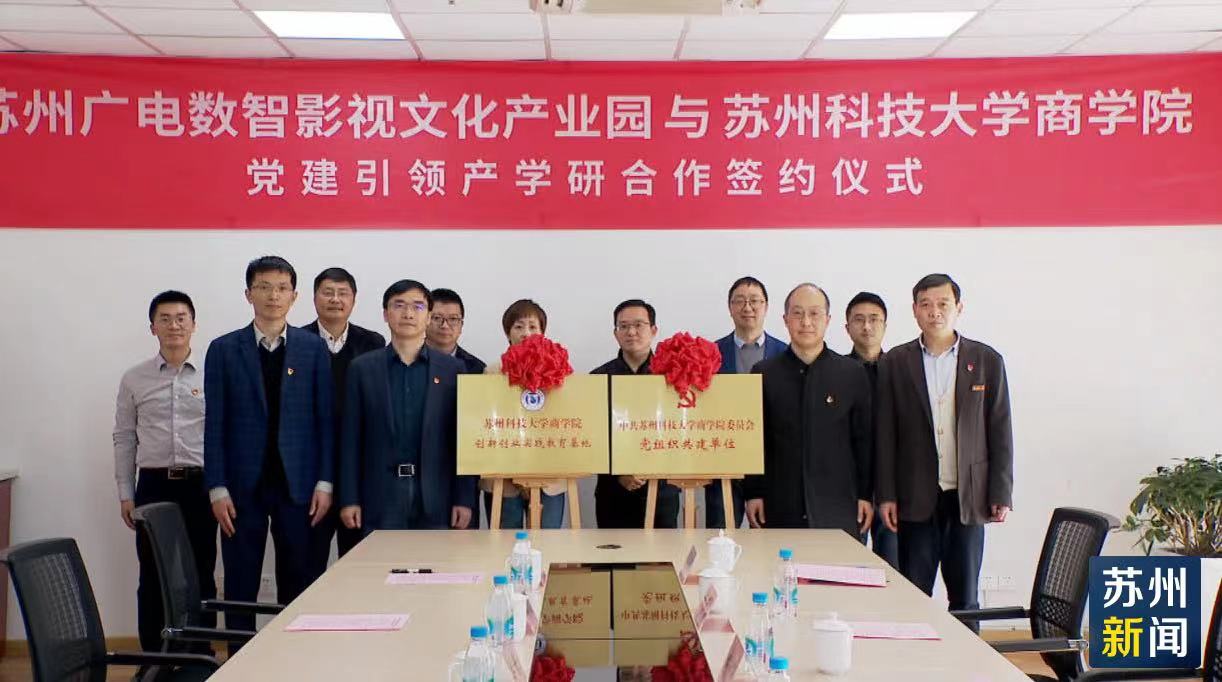 4月7日,MS88官方网站与苏州广电影视娱乐投资有限公司暨苏州数智影视文化产业园举办党建共建和产学研合作签约挂牌仪式。苏州广电总台党委委员、副总台长姜超、苏州广电影视娱乐投资有限公司影视城党支部书记、总经理姜飞、公司党委组织部副部长徐治初、商公司党委书记江忠华、副经理杨传明等出席活动。